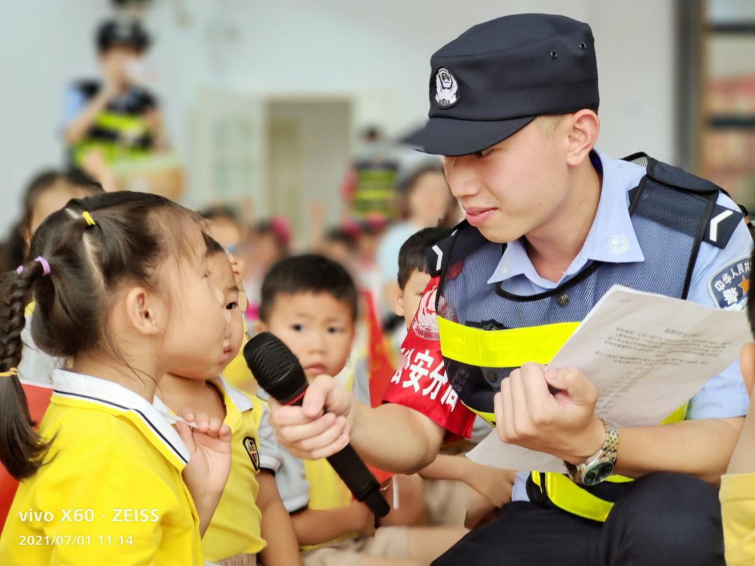 为了持续推进“平安校园”的建设,更好地结合建党100周年系列活动,2021年7月1日上午,我院实习生在仙葫派出所民警汤佳红的带领下到凤凰岭路幼儿园宏福分园开展安全主题教育活动。期间,我院实习生与派出所民警结合典型案例,以简单易懂的语言,通过问答方式,向孩子们普及了交通安全知识、防溺水知识,强调了暑期安全的重要性。此外,对积极参与问答的小朋友给予了糖果奖励,不仅提升了孩子们的参与度,也加深了孩子们对知识的掌握,为构建平安校园打下坚实基础。