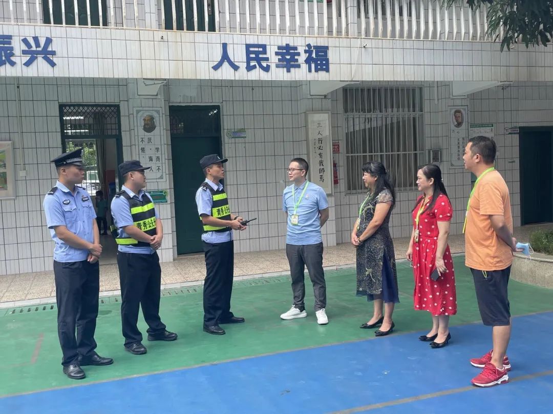 向阳派出所增援学警钟家宝、长岗派出所学警易明源在辖区小学开展安全维稳工作。