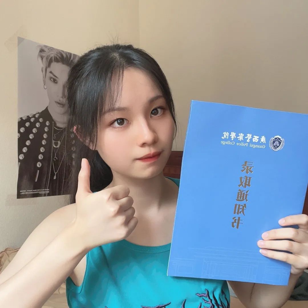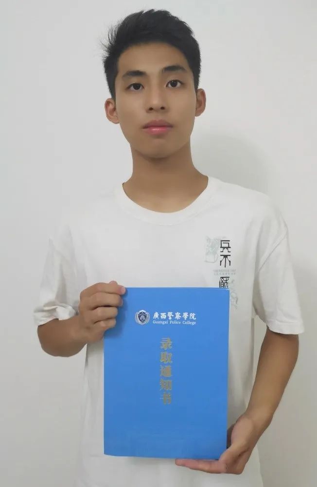 终于等到你:广西警察学院的录取通知书。我在高考前我就励志要做一名警察。小时候在电视上看警察姐姐又帅气又飒爽,我也想像她一样。后来,我和朋友在公共场合劝说几位男士不要吸烟,但他们却不以为意反而更过分,我们只好无奈离开。这件事让我更加坚定做警察的信念,若我是警察,那些不良人士就不会无视我的劝告吧。当时的我只是单纯地想做一名警察去保护身边的人,去维护我的利益。