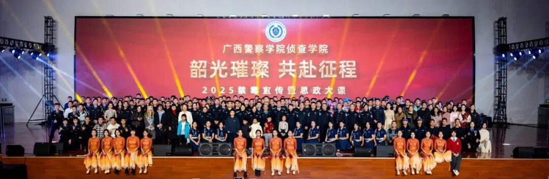 2025年12月26日,广西警察学院侦查学院“韶光璀璨 共赴征程”2025年禁毒宣传暨思政大课于仙葫校区学术报告厅顺利举行。侦查学院党总支书记程宏斌,党总支副书记、院长张晓春,党总支副书记覃伟刚,副院长徐炳全,各年级辅导员、教师,部分学生家长,23、24、25级全体学生齐聚一堂,同庆盛事。