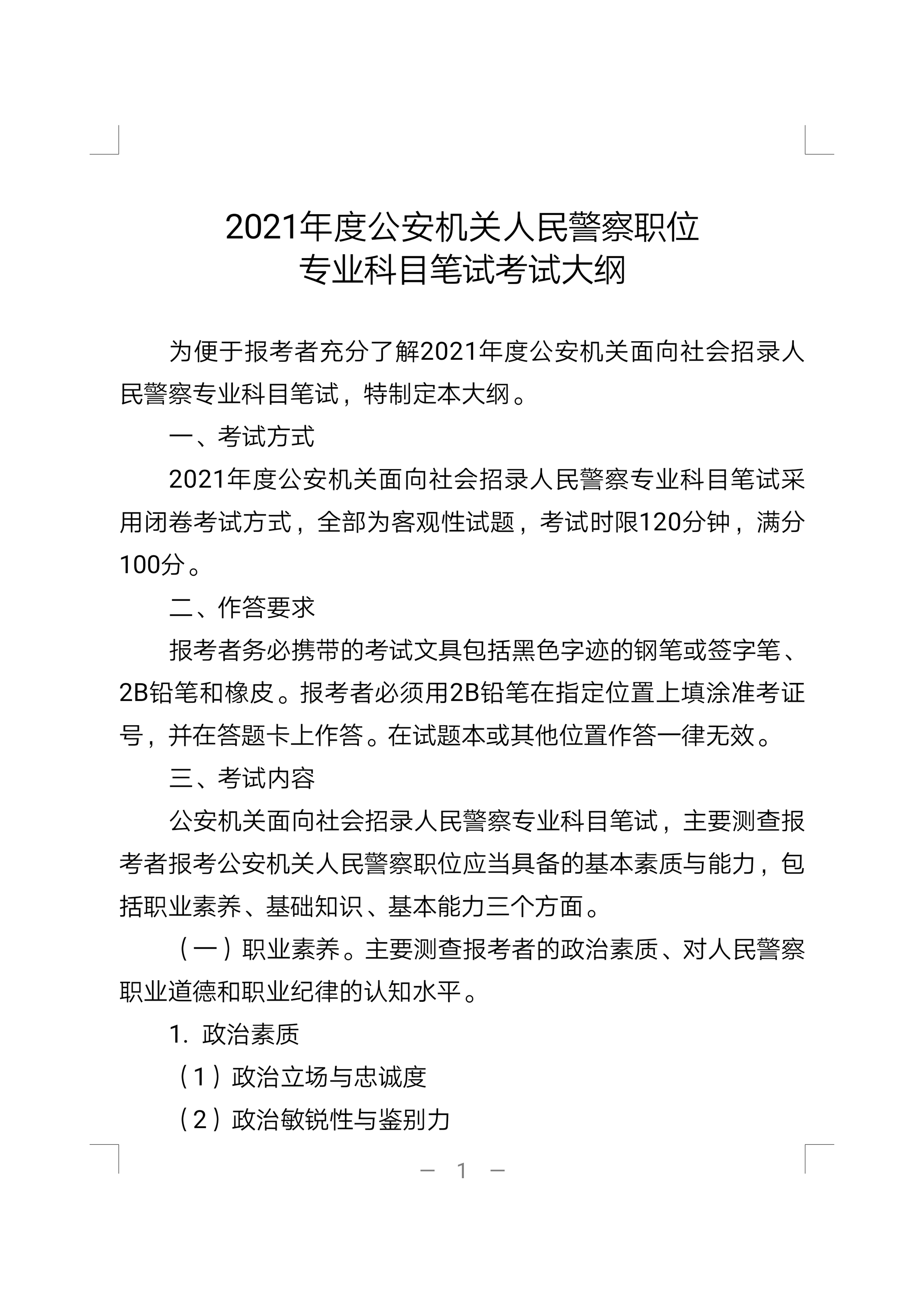 2021年度公安机关人民警察职位专业科目笔试考试大纲