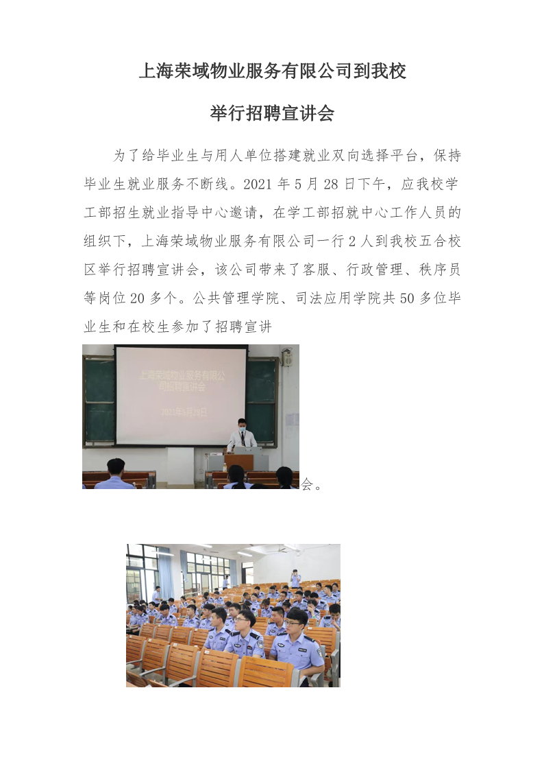 上海荣域物业服务有限公司到我校 举行招聘宣讲会