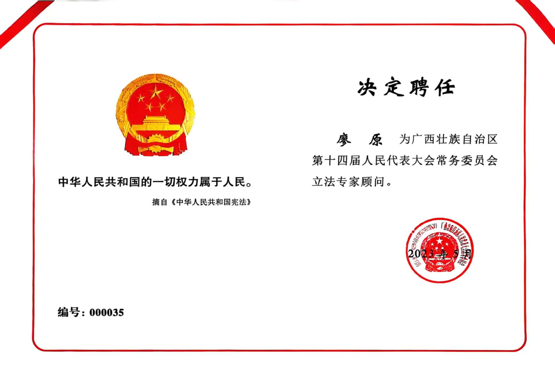 法学院教师获聘广西壮族自治区人民代表大会常务委员会立法专家顾问